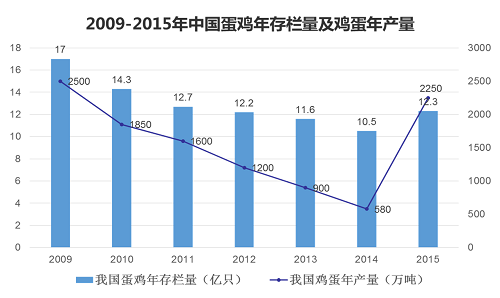 (2009-2015年,中國蛋雞產(chǎn)業(yè)規(guī)模呈現(xiàn)持續(xù)下滑后回升的趨勢(shì))