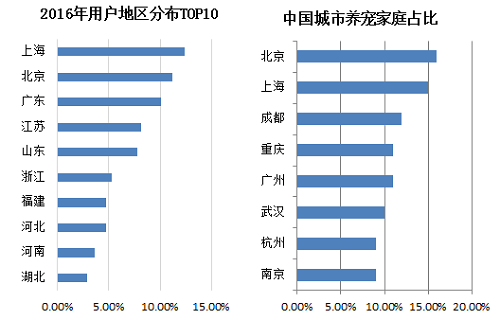 中國養(yǎng)寵用戶主要居住在沿海經(jīng)濟(jì)發(fā)達(dá)地區(qū)。