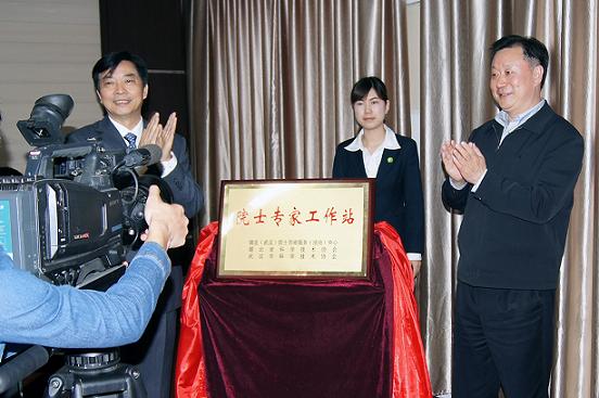 湖北省科協(xié)主席、黨組書記夏航(左)、武漢市副市長邢早忠(右))為工作站揭牌
