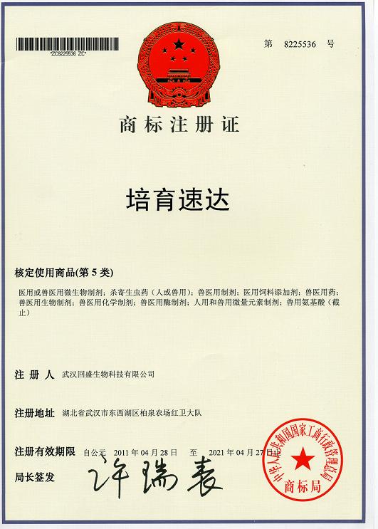 培育速達(dá)商標(biāo)注冊證