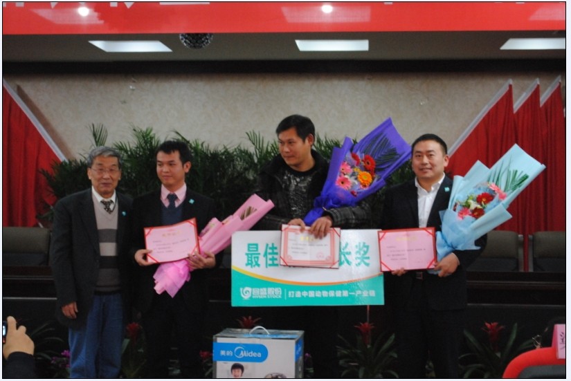 李興飛,對于前兩位獲獎?wù)邅碚f,算一名新人。來公司不長,從飼料跨行到疫苗,最后落腳回盛,在合肥市場,他要騎摩托車下豬場,風(fēng)霜雨雪也是如此。小小的個子,撐起強(qiáng)有力的腰板,不怕苦不怕累,崎嶇的道路不是他的障礙,靠兩個輪子的摩托摘奪2013年度銷售桂冠。