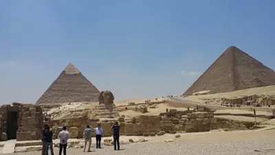 5月31日,陽光明媚,天空如洗。我們一行五人來到位于埃及開羅西南邊的金字塔。還沒下車,就見到一架架中世紀(jì)風(fēng)格的馬車混入現(xiàn)代氣息的車流和人流中,嗒嗒滴飛馳穿梭;一陣陣馬屬動物的味道夾雜在燥熱的空氣中,不適的同時也給人一種自然而真實的歷史感。