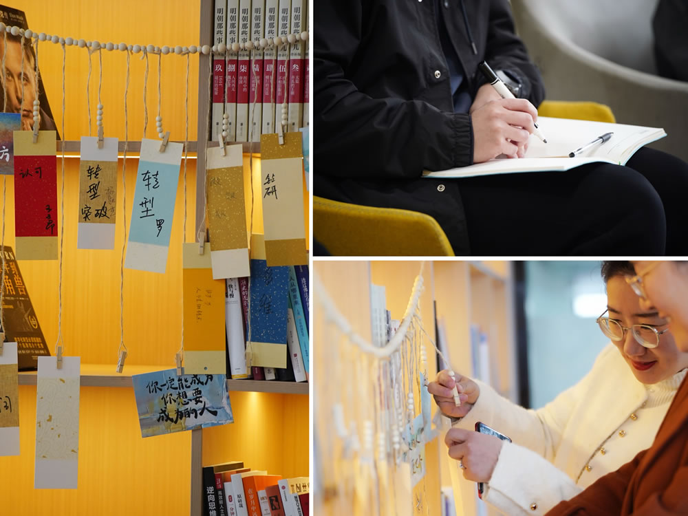活動(dòng)開場(chǎng)后,每位參與者以“2025年最想突破的職場(chǎng)關(guān)鍵詞”為引,寫下新年的成長(zhǎng)期許?;厥褌儗㈥P(guān)鍵詞書簽懸掛于讀書室主題墻,再以"可落地行動(dòng)項(xiàng)+計(jì)劃閱讀書目"構(gòu)建年度閱讀企劃。